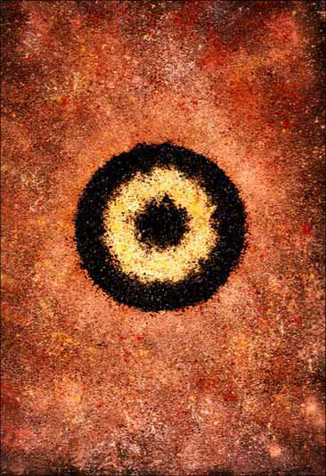 Acrylic, oil, lava rock, dry pigments on Arches paper, named after Jupiter's moon 14" x 11" (Framed 26" x 20")