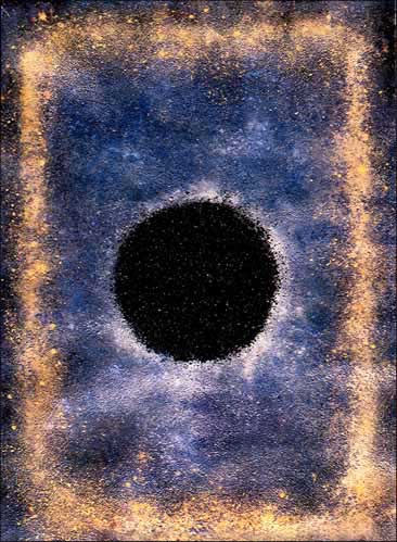Acrylic, oil, lava rock, dry pigments on Arches paper.