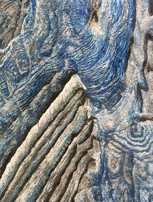 Acrylic, oil, modeling paste, pumice stone on wood panel