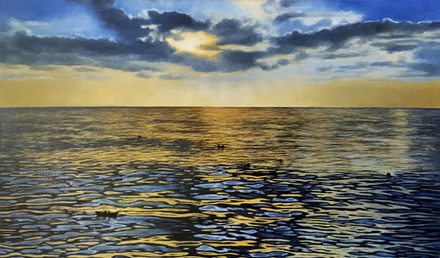 | My landscapes and skyscapes are an ongoing theme, based on my worldwide travels. I’ve been fortunate to travel to many countries for my art actvites and when I would visit my husband. His work was international and far-reaching. Always it is color that first attracts me when I see new lands and new environments. I’ve painted the many blues of Alaska’s glaciers, the steamy greens and yellow sulfur of Hawaii’s islands, the vast veldts of Africa, Florida’s beaches, and the many cities and towns of Europe and Asia. The wonderment is the beauty and variety of our blue planet. | ||||
