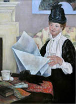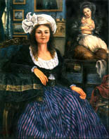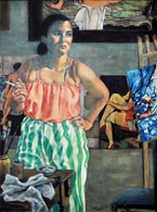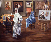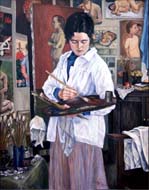 "The women artists paintings are a series of pictures, each completely different in style and handling, utilizing Merrilyn's personal friends as portrait stand-ins for historical figures…the paintings present a robust celebration in color and detail of an exclusive, lively, and friendly art history." |